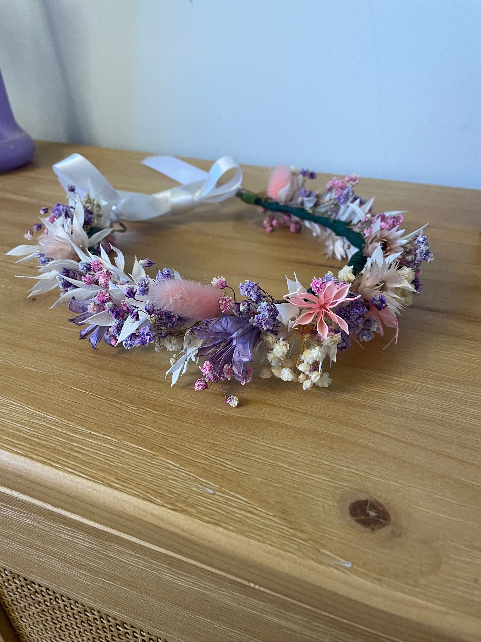 Floral bespoke flower crowns made from dried flowers for your special occasions. Select your wedding flower colours and I can create a dried selection of flowers for your hair.